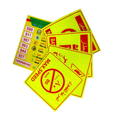 | Nome del prodotto | Arabia Saudita Adesivi riflettenti Segni di costruzione Veicolo mantenere la distanza Signale di avvertimento di divieto di fumo/estintore/limite di velocità |