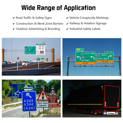 Offre prestazioni retroreflettive a gamma completa e grandangolare, garantendo una visibilità eccezionale per i conducenti a varie distanze di visione e angolazioni di osservazione.o condizioni meteorologiche avverse, il foglio mantiene un'eccellente luminosità e chiarezza, migliorando notevolmente la sicurezza stradale.